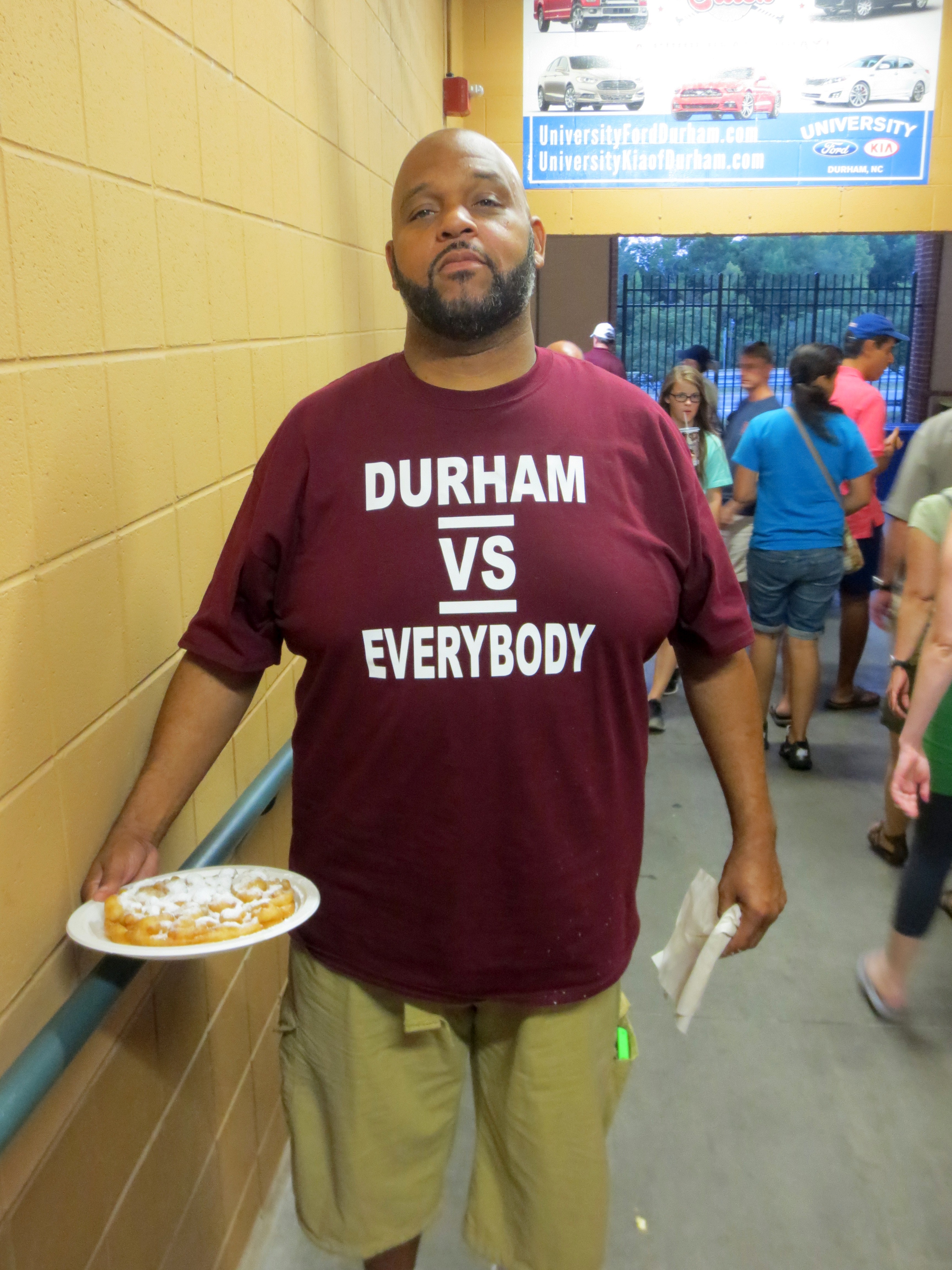 It’s not just the stadium amenities alone that makes the DBAP such a great facility — though there is no doubt that the presence this season of things like an on-site brewery help the DBAP to take minor league baseball to a new level. It’s also the level of fan participation and excitement. When the DBAP scoreboard encourages the fans to make noise, they actually make noise. Couple that with Durham’s us-against-the-world mentality (represented beautifully by a simple t-shirt worn by Bulls fan Tommy that states clearly, “Durham vs. Everybody”) and you have a recipe for baseball gold.