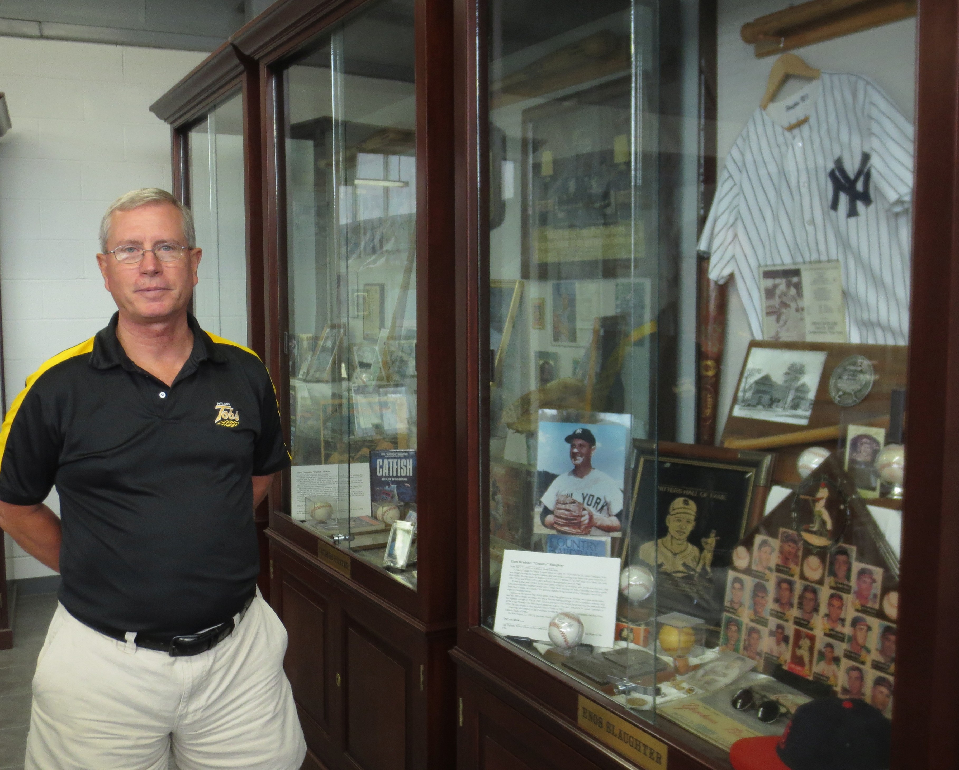 Seven special cabinets house memorabilia from North Carolina’s seven Hall of Famers, including Gaylord Perry, Catfish Hunter, and Enos Slaughter. Much like the second floor of the Core Sound Waterfowl Museum on Harker’s Island, the North Carolina Baseball Museum is the state’s attic of personal treasures related to all aspects of baseball in our state — and a terrific embodiment of the power that this game can have on people. (Special thanks to Eddie Boykin for showing me around the Museum today and for pointing out details I might have missed on my own.)