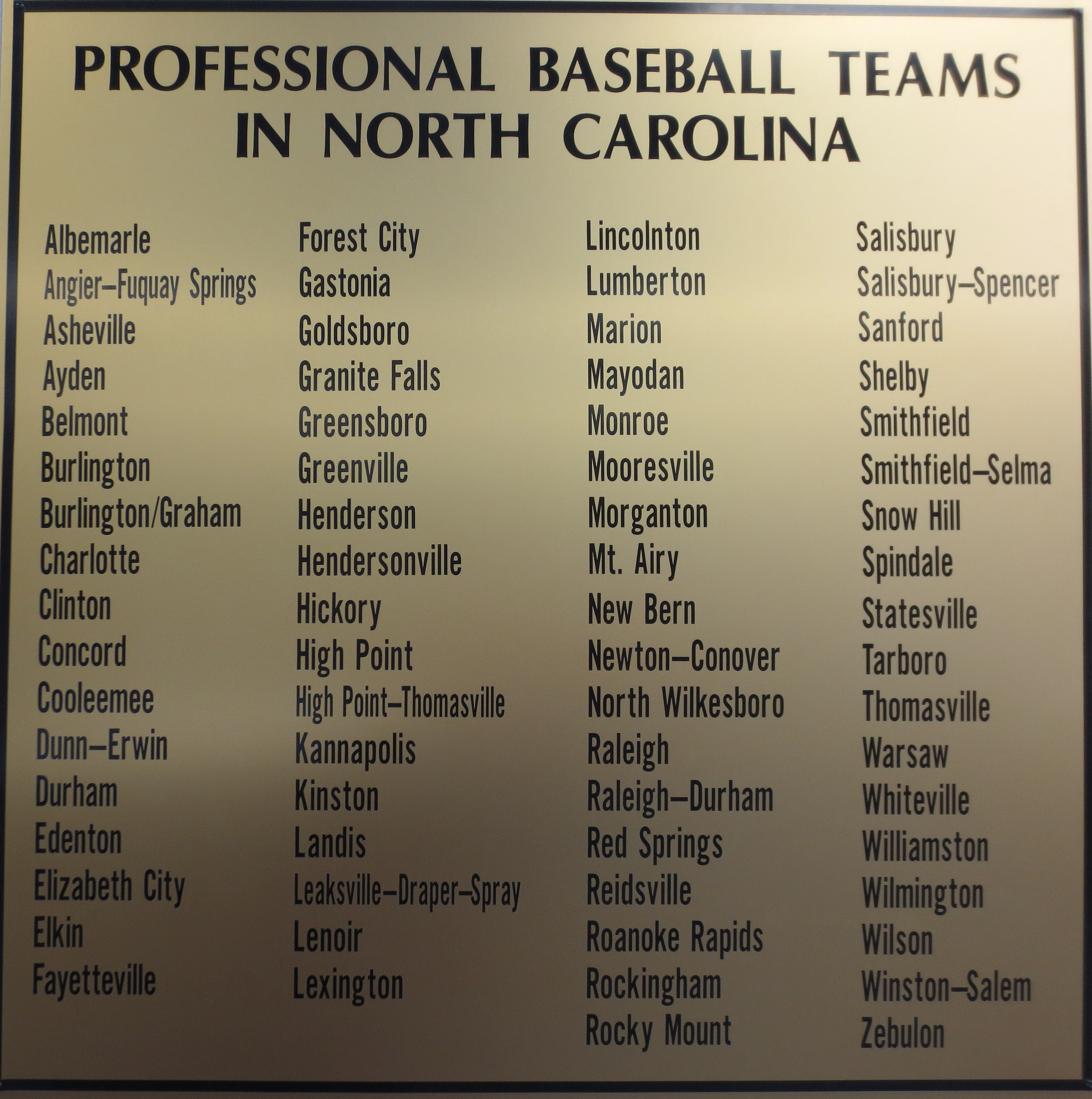 Walt Whitman — of all people — was right (see yesterday’s lead quote): Baseball is the Everyman sport of our country, and that is clearly on display in places like Five County Stadium and the Museum, home to so many once and future heroes, famous and forgotten alike. A plaque on the wall at the Museum lists all of the North Carolina communities — some of which no longer exist, having been absorbed by surrounding larger towns — shows just how broad and deep the reach of this sport has been in North Carolina, and also suggests just how deep the roots run that likely will keep baseball a fixture of our cultural fabric long after other sports-of-the-moment fade into distant memory.