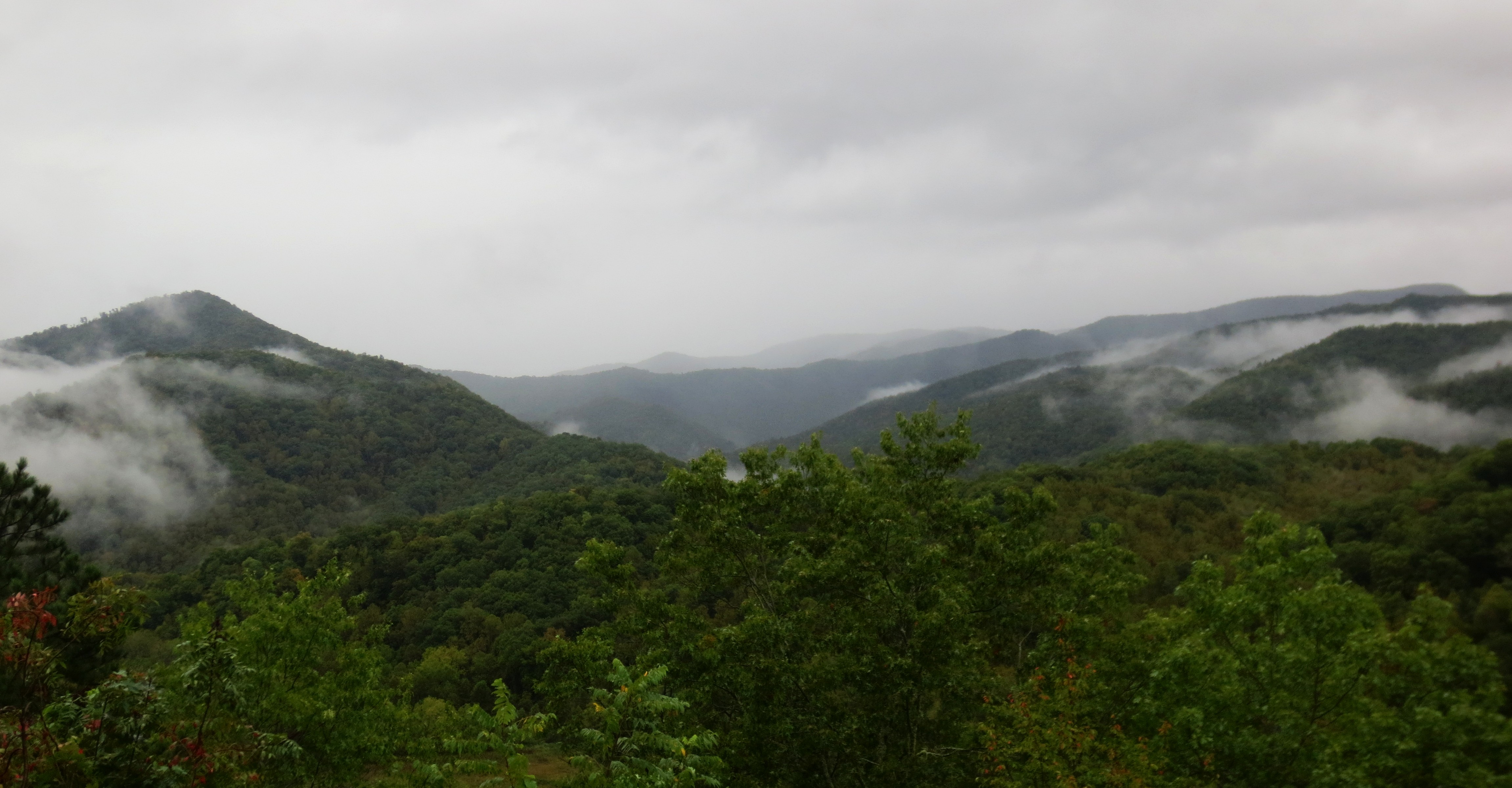 Two things stand out about the hike, neither of which is likely to be replicated if you visit on a sunny day: the absolute solitude (I had the entire experience to myself) and the slightly jarring sensation, upon arriving at the knob, that I had made it to the edge of the earth. Because of the heavy fog all across the valley, the view from the knob was nothing short of mystical: a sheer drop into . . . nothingness. I have no idea what this short hike would be like on a regular day with no wind, no rain, and plenty of sun, but today, it was like stumbling upon the end of all Creation.