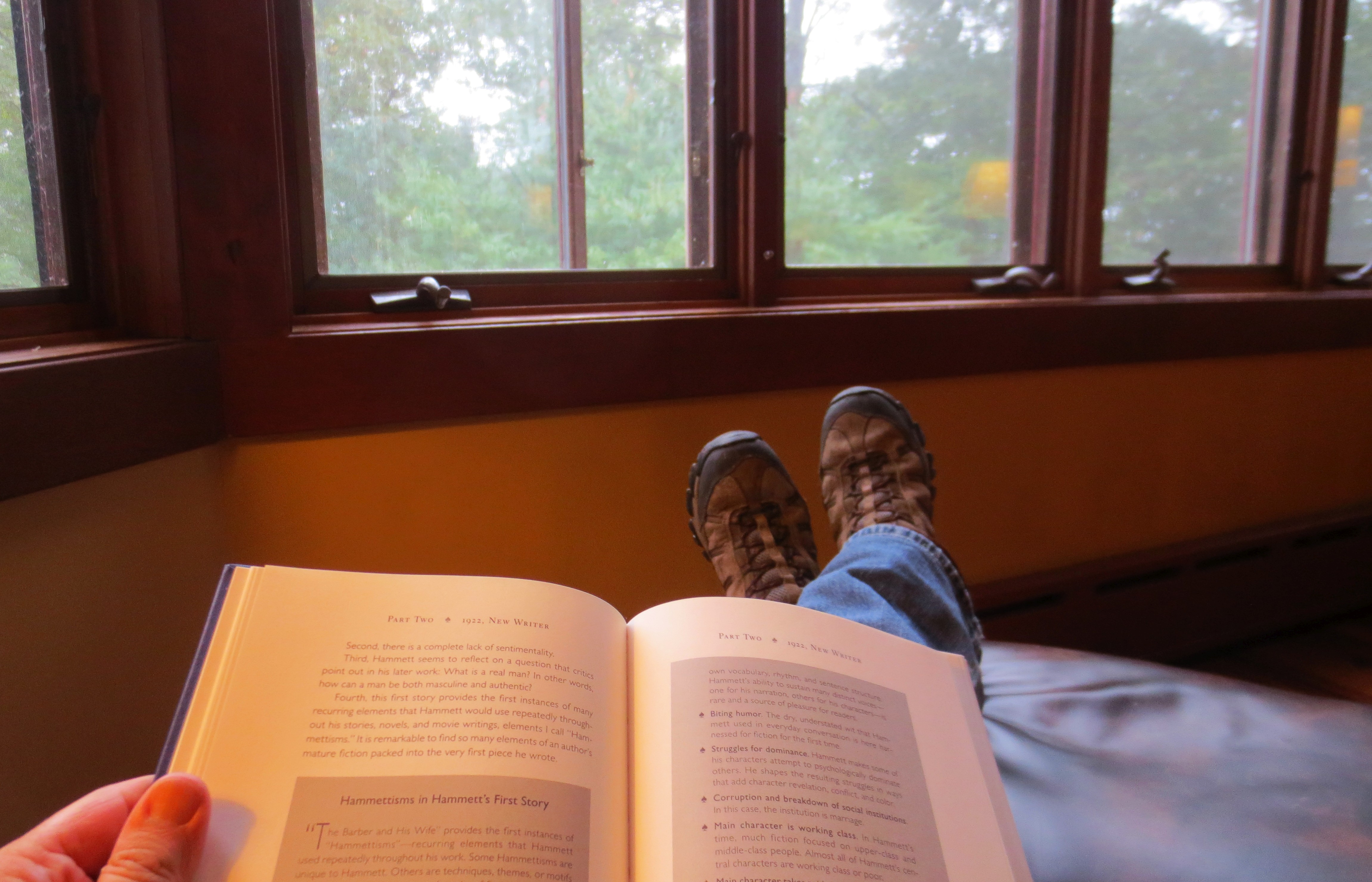 After my hike, I sat down near the fire in a comfortable leather chair and read the first few chapters of the Dashiell Hammett book my colleague, Shaun, loaned me.