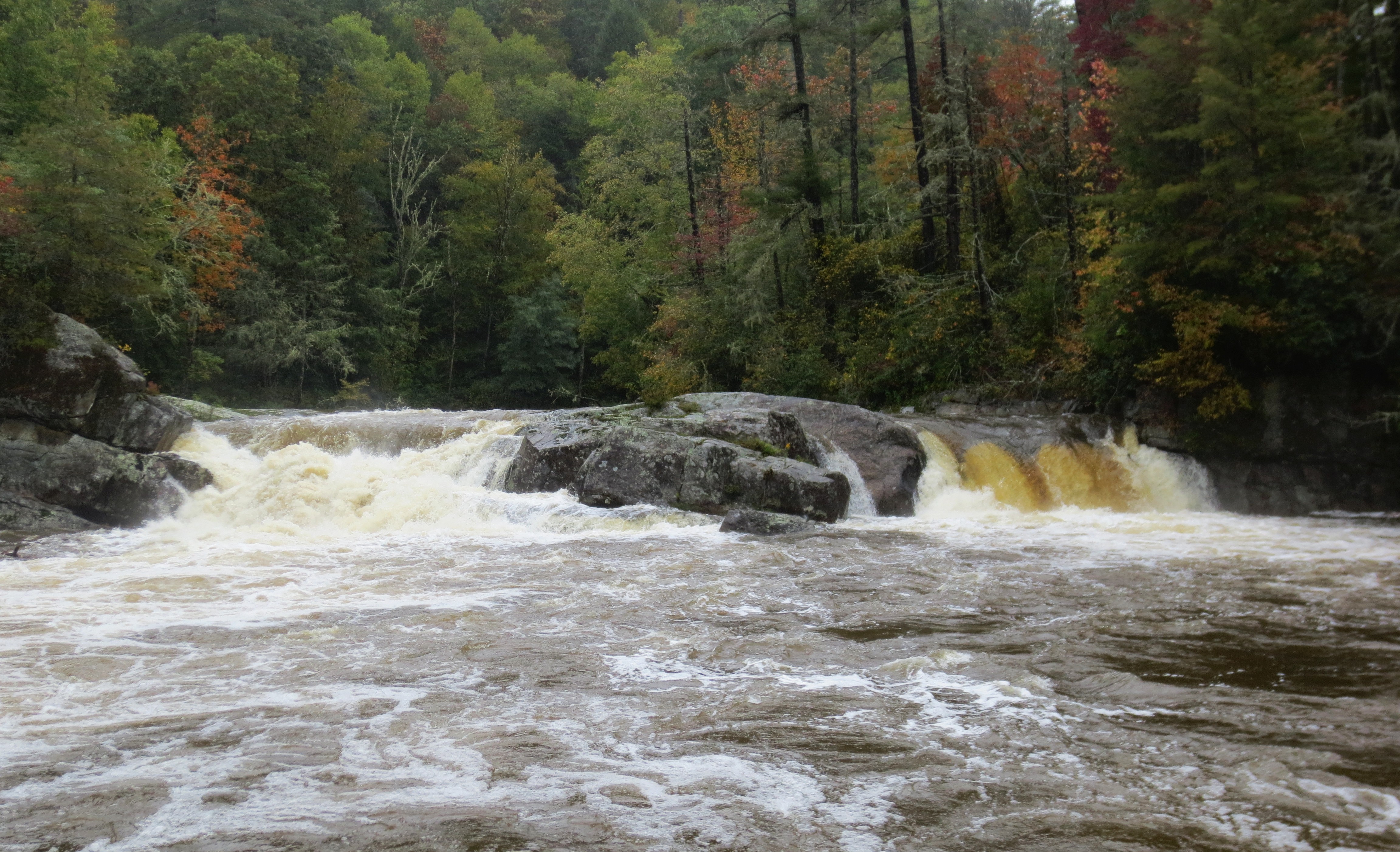 As was the case a few days ago, my Linville Falls excursion was more of a stroll than a hike, but with the rain the heaviest it has been so far this week, I was not terribly upset about having to opt for a relatively short walk. The walk to the first cluster of falls is only about one-half of a mile, and it is an easy walk at that, though it does require a little care on the segments that cross bare (and today, slippery) rock.